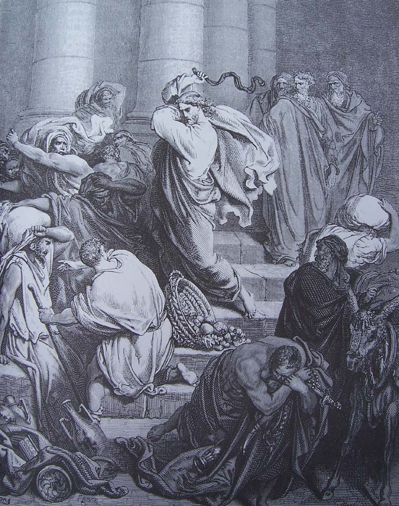 (Mt 21, 1-10), il chasse avec fracas les vendeurs du Temple